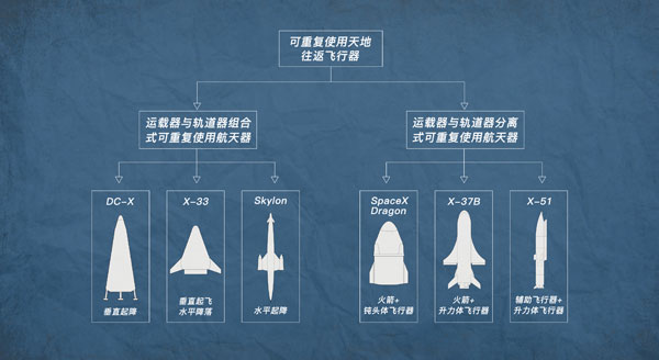 常见的可重复使用航天器主要包括:载人飞船、货运飞船、推进飞行器、行星着陆器、航天飞机等。