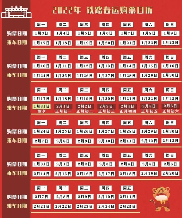 春运火车票开售 购票日历来了快收藏:2022年春节放假时间一览
