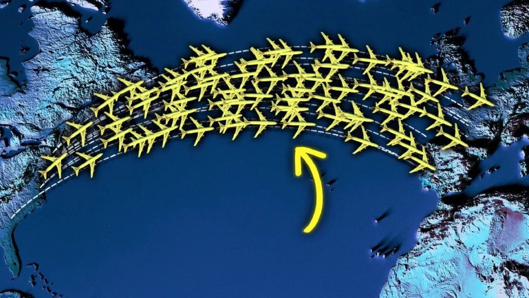 图上标的就是飞机穿越大西洋时必经的航线,但看完我们不免困惑,大西洋上空明明这么广阔,为何所有飞机都要挤同一条“空中走廊”呢?