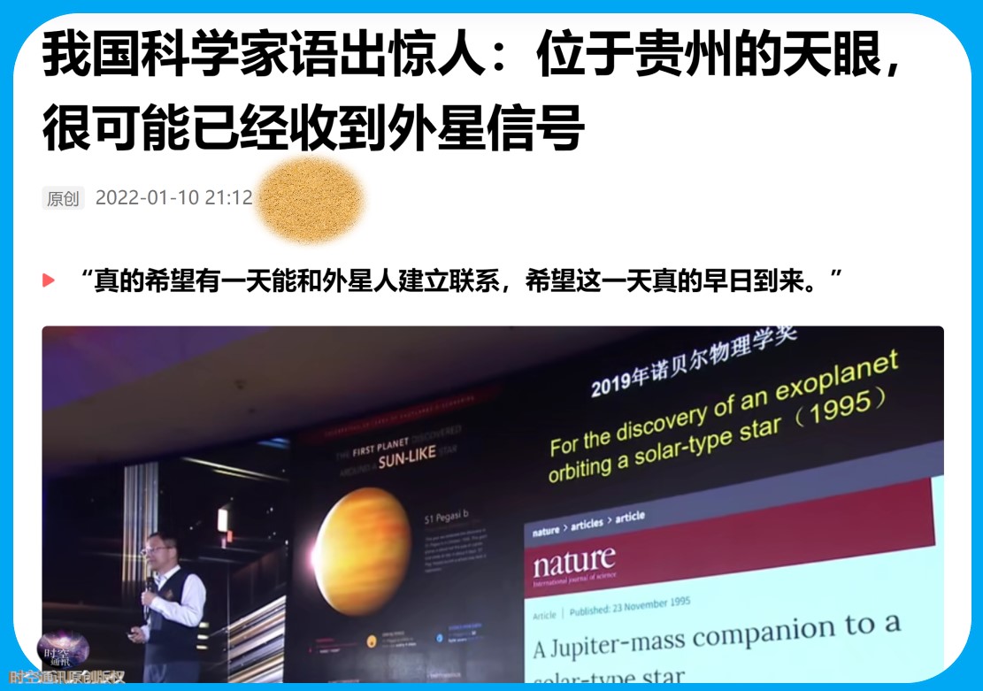 (原文章信息:标题:“天眼”到底在看啥,可能已经收到外星信号?,作者:佚名,来源:时空通讯原创,来源地址:https://cloud.kepuchina.cn/newSearch/imgText?id=6881799233199136768)