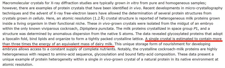 其实关于蟑螂奶的研究中并不是想表达这个意思,而是说“单个晶体的能量是同等质量的乳制品的三倍以上。”这里的“3倍”指的是蟑螂奶的热量,而不是所有的营养价值。