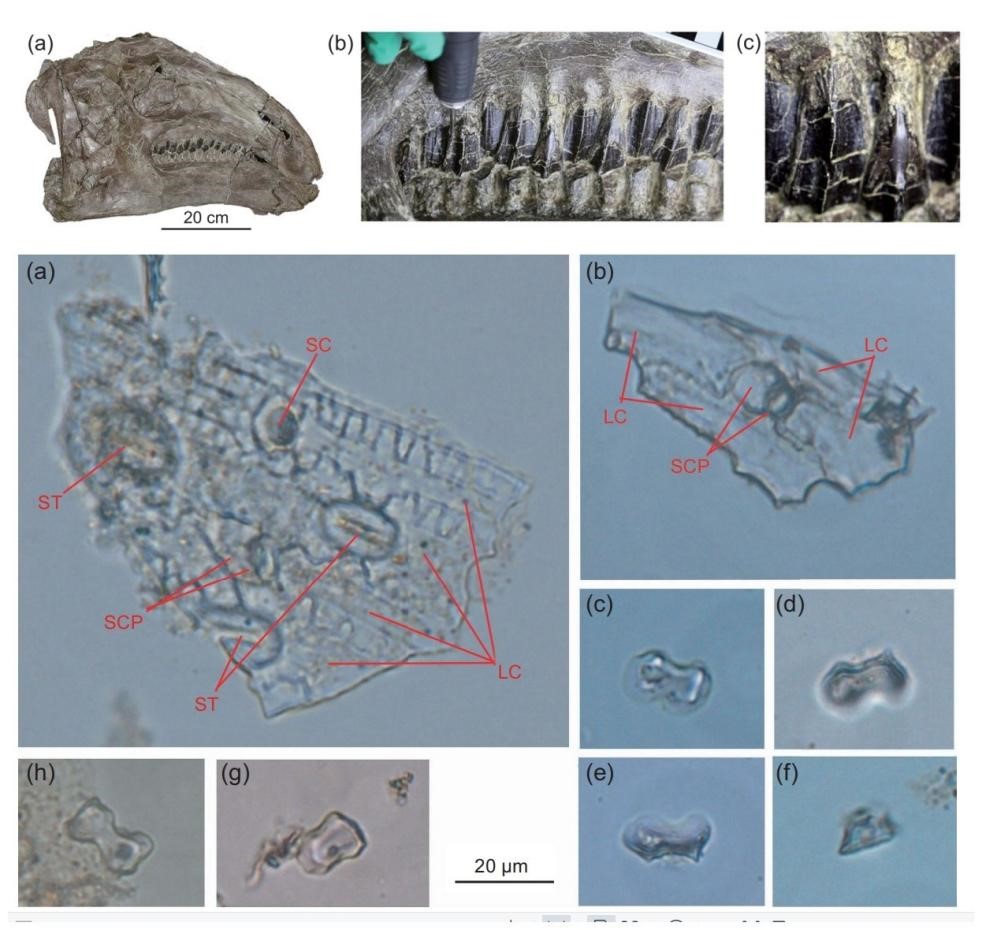 马鬃龙化石及其嘴里的植硅体 (图片由作者提供)