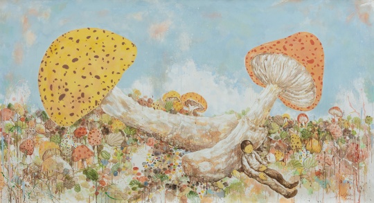 《男孩与大蘑菇》 147 × 270cm 布面丙烯 2022