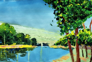 就这样,我们拉着河潮的手一起度过了一个又一个难忘的盛夏。水流唱着童年的歌,载着名为梦想的舟,前行,前行,仿佛流到了天边……晚风追逐着麻雀穿林而过,不知惊醒了多少在睡梦中的茵茵绿叶,不过没有关系,他们早已对彼此知根知底,相伴相生。