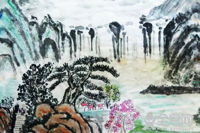 其次所画之季节,亦和选定树种,使用夹叶当否有关。梁元帝描述树木和叶子的四季特征,“春英者叶细雨花繁也,夏荫者叶密而茂盛也,秋毛者时疏而一零乱也,冬骨青叶枯而枝槁也”。象桃李之点缀春色,梧桐、槐树适于更热,枫树、柿树表现秋光,寒梅、柏树多在寒冬。在一般山水画中的树叶和山石匕的苦点,多是概念、性的圆点,而少用专指某种树科或某种花草之苔点。
