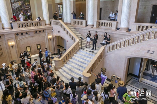 9月6日,以上海音乐厅员工为班底组成的重奏乐团“厅默森”在上海音乐厅北厅奏响开厅第一曲。当日,历时一年半封闭式修缮的上海音乐厅重新向公众开放,并举办“相·见”主题开放日特别活动。邀请观众第一时间进入音乐厅,了解修缮细节,感受建筑之美。 上海音乐厅建于1930年,是上海知名文化地标之一。此次修缮对2000多平方米的“文保区域”严格修旧如旧,恢复原有风貌;非文保区域则重新装饰装修,提升功能。新华社记者 王翔 摄