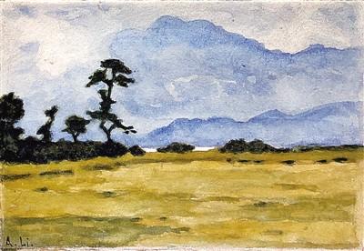 李叔同作水彩画《沼津风景》,天津博物馆藏