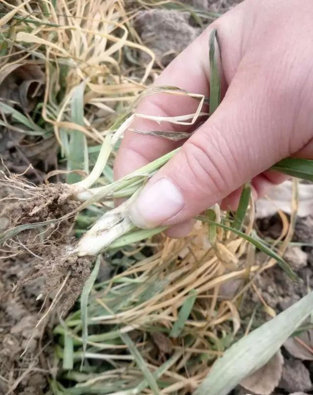 而这次冻害,主要原因:由于前期雨水充足,墒情好,播种量又大,小麦底肥氮肥过多,与常年同期相比出苗齐,出苗快,整体出现旺长的情况,加上去年11月中旬骤然低温降雪天气,小麦未能逐渐低温,抗逆能力相当弱,而是跨越式接受寒冷,造成部分地块冬小麦出现叶片黄化、根系弱少、发黑腐烂、冻害干枯等现象,当然受冻情况各地略有差异,给冬小麦生长发育造成了一些不良影响。