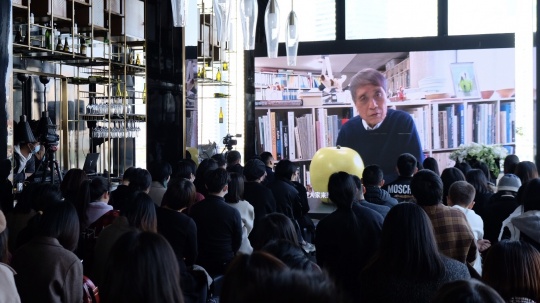安藤忠雄在发布会现场通过视频连线发言
