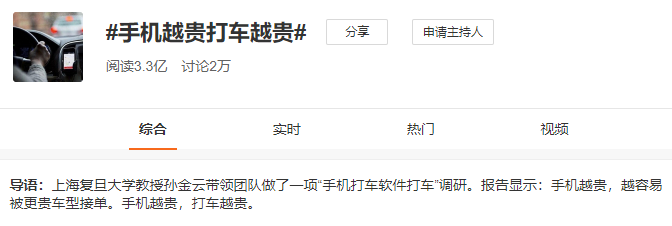 恰逢315,估计这会某些公司的公关部门又该紧张起来了。最近,有关打车软件“杀熟”的情况再一次上了热搜,上海复旦大学教授孙金云带领团队在国内五个城市,花费50000元,通过打车800余次,得到了“手机越贵打车越贵”的结论。