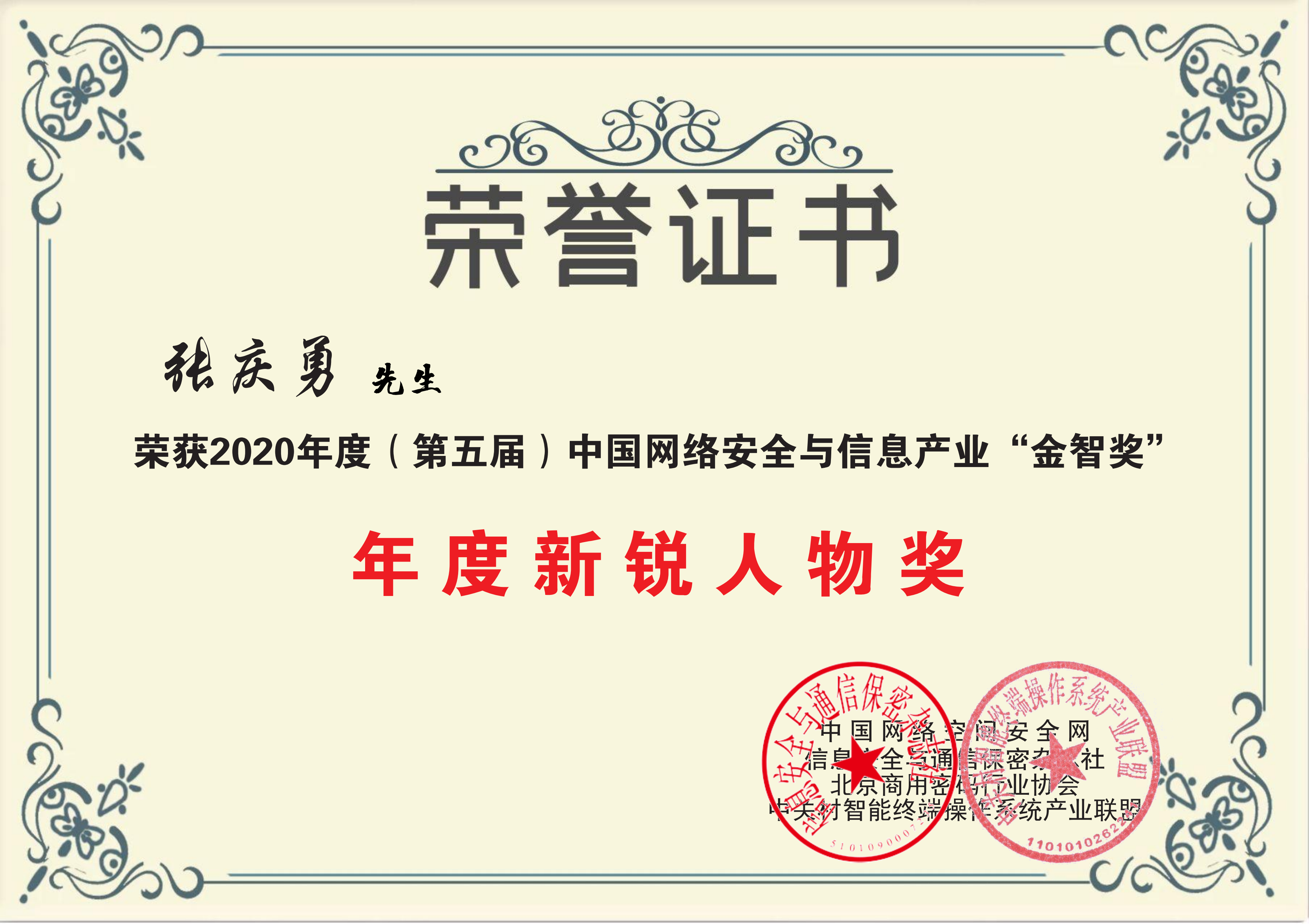 信安世纪高级副总裁张庆勇荣获2020“金智奖”年度新锐人物奖