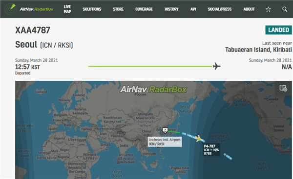 世界最长客机直飞航线的新纪录诞生了。 来自瑞士包机公司Comlux的一架波音787-8客机(注册号PA-787),于3月28日执飞了XAA4787航班,它于当地时间12点57分在韩国首尔起飞,并于当地时间21点16分抵达阿根廷首都布宜诺斯艾利斯。 全程飞行了19483公里,没有中途停靠,用时20小时19分钟。