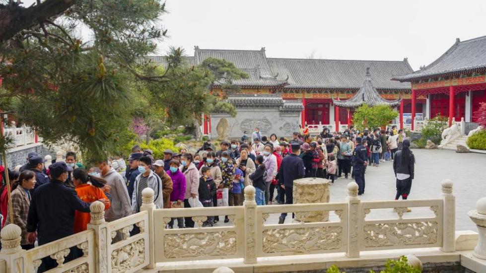 在园区各地景点中,最受游客欢迎的当属酱油文化博物馆和百年古牡丹花树园。古色古香的酱油文化博物馆,雕梁画栋、龙腾祥瑞,吸引了大批着汉服游客打卡拍照。千株百年古牡丹花树园进入盛花期,花满枝头,香味四溢,人行在花中,可谓是步步生花。古牡丹花树园的亭子上也缠满了祈福红绳,盛满了广大游客的美好愿望。