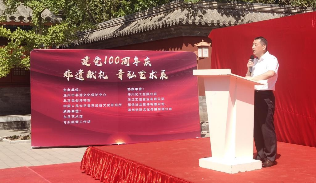 北京民俗博物馆馆长曹彦在讲话中表示,北京民俗博物馆自2019年以来,响应“一带一路”倡议与24个国家建立友好的文化交流,青弘瓯塑艺术展走进北京民俗博物馆,就等于把温州传统文化与温州非遗推向世界的交流舞台。