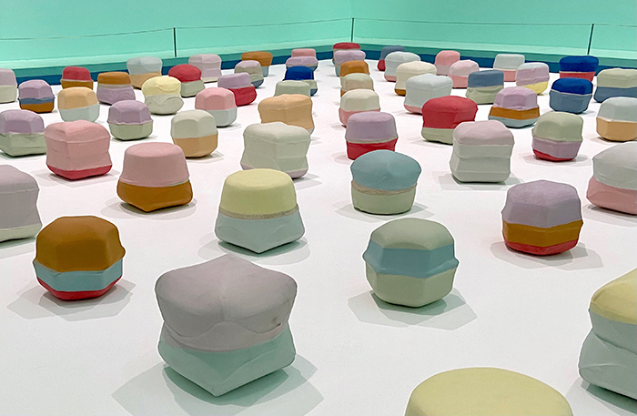 庄辉用3D打印技术重塑“小河美女”的睡颜,借助当代科技实现了对西域往事的浪漫想象。杨茂源曾跟随考古队前往楼兰,多年来一直在进行关于新疆的艺术创作。此次展出的作品以维族花帽为灵感,试图剔除被赋予在形体之上的关于历史、文明、族群和时间的记忆。