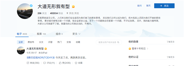但需要注意的是,已经许久未曾出手的中国投资圈大佬段永平却逆势加仓腾讯,他在雪球账号“大道无形我有型”中写道,“今天买了点腾讯控股,再跌再多买些”,这也重新鼓舞了不少投资者的信心。