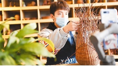 贵州省榕江县大十字社区某科技公司工坊内,一名员工正在进行网上蕨编技能培训。   |