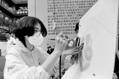 2021年5月30日,重庆市沙坪坝区职业教育活动周现场,学生们在进行技能演示。孙凯芳摄/光明图片