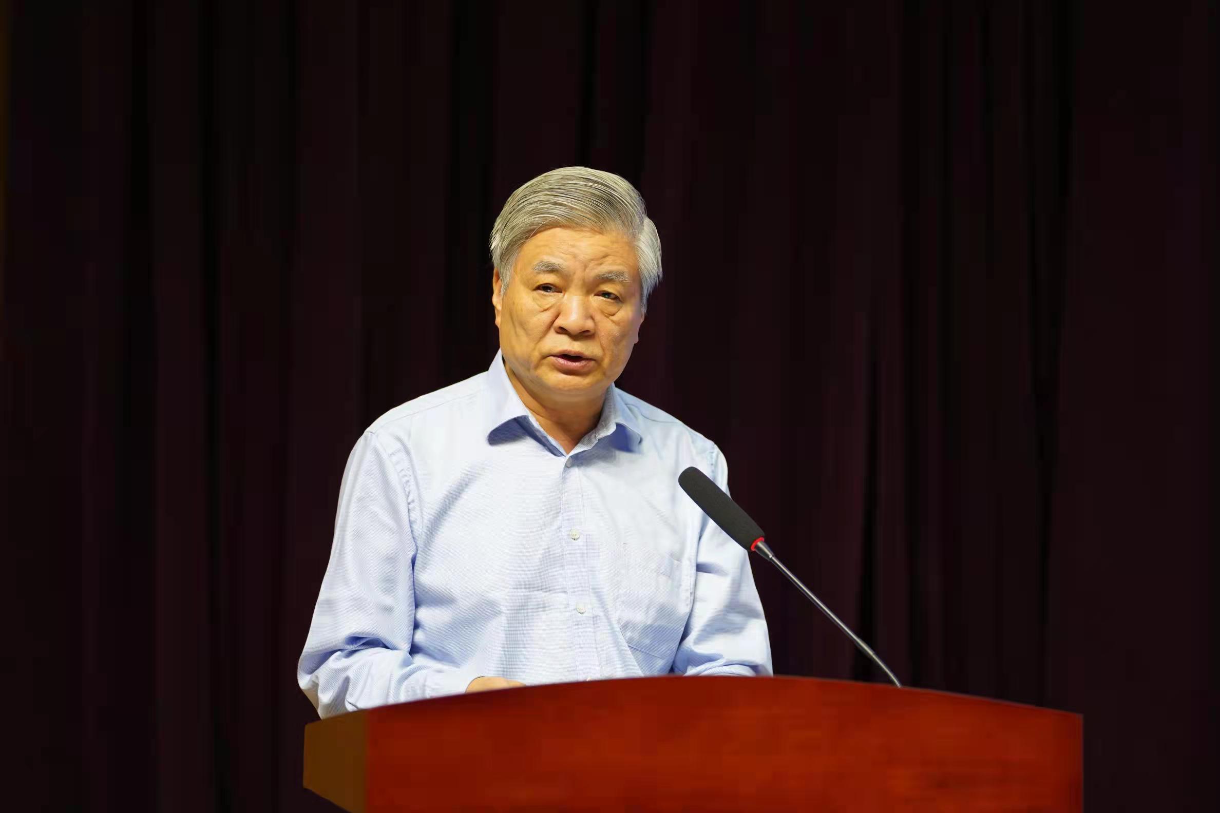 图为全国人大常委会委员、中华职教社副理事长龙庄伟讲话。主办方供图