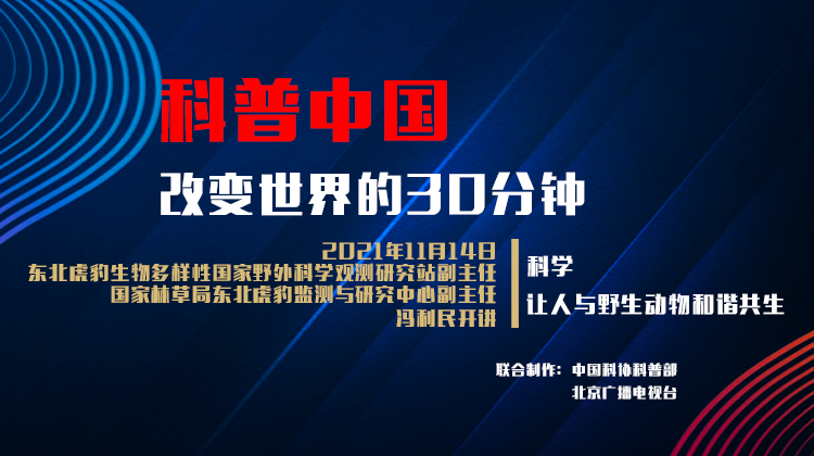 本期节目嘉宾为北京师范大学生命科学学院博士生导师、东北虎豹生物多样性国家野外科学观测研究站副站长、国家林草局东北虎豹监测与研究中心副主任——冯利民,他从事珍稀濒危物种和生物多样性保护研究近二十年,亲身参与了东北虎豹监测与研究中心的建设过程;从跋山涉水到研发智慧监测,他见证了我国野生物种保护事业迈向科技化、智能化的跨越;对野生动物多年的追踪和保护,让他从一名生物学的学生,成长为我国野生物种种群的复原专家。冯老师将带我们了解黑科技在东北虎豹国家公园的应用。节目将于11月14日19:30播出 ,届时北京广播电视台科教频道、科普中国官方平台@科普中国、北京时间APP同步上线,敬请关注。http://71pull.btvcloud.com/brtv2021channel/2021kjchannellive3.m3u8
