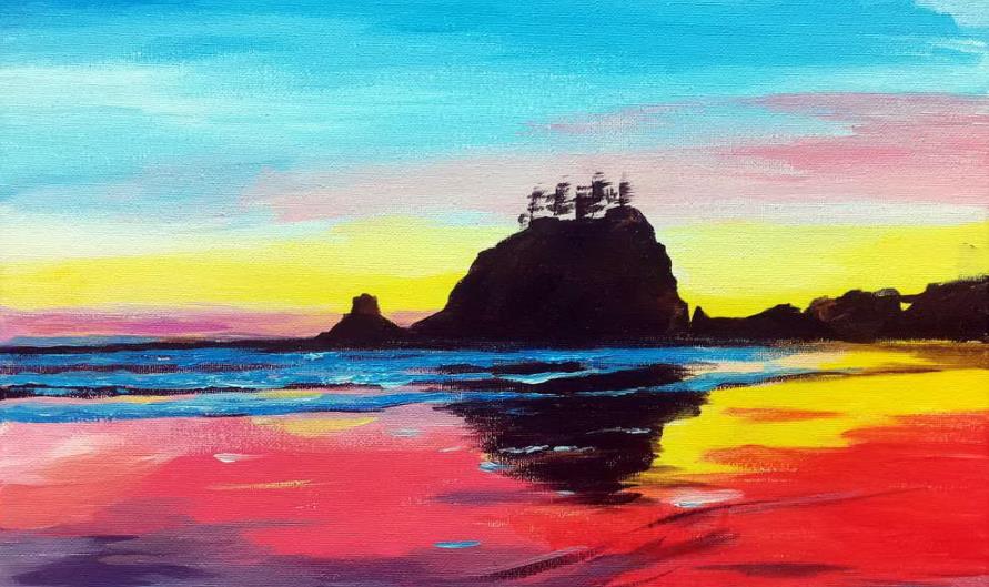 小哥用三种不同颜色的树脂倒在了海面不同的区域,靠近沙滩的部分蓝色最浅: