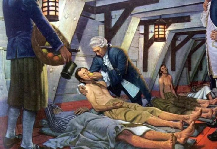 1753年,苏格兰海军军医詹姆斯林德提出了这种疾病的发病原因可能是和饮食有关,毕竟在航海过程中,大洋可以提供丰富的肉类,倒也不是饥饿问题,但问题是,缺乏蔬菜和水果。而随后探险家库克验证了这个发现,如果随船携带蔬菜水果,尤其是柑橘和柠檬,那么,就可以极大的预防和治疗坏血病。