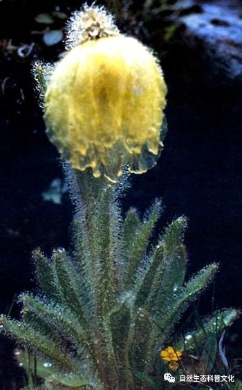菊科风毛菊属的雪莲、雪兔子主要分布在4000米以上的高山流石滩或多石的草丛中,其含羞却傲立的头状花序被一层雪白绒毛笼罩着,既可以保暖,又可反射高山的强烈光照。