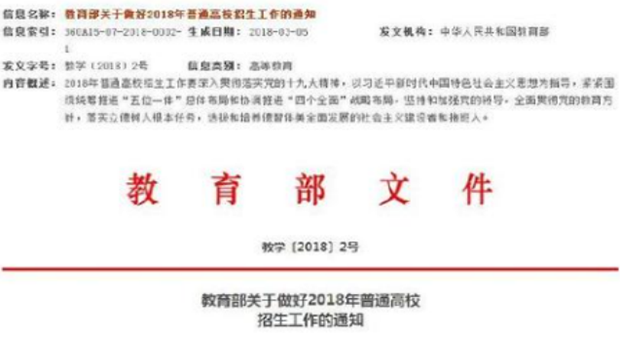 2018年教育部出台相关规定,全面取消体育特长生、中学生学科奥林匹克竞赛、科技类竞赛、省级优秀学生、思想政治品德有突出事迹等全国性高考加分项目。