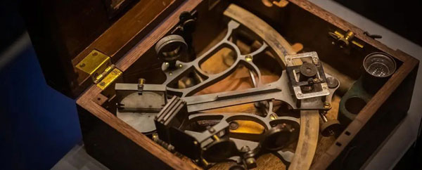 在国家海洋博物馆海洋天文展厅入口上方的水晶装饰,就是一个六分仪的造型。
