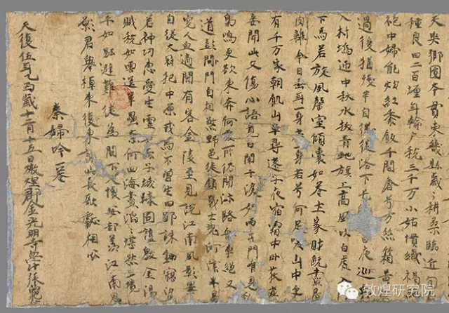 藏经洞文献中保存有《秦妇吟》的写本,该文物原件保存于法国国家图书馆。