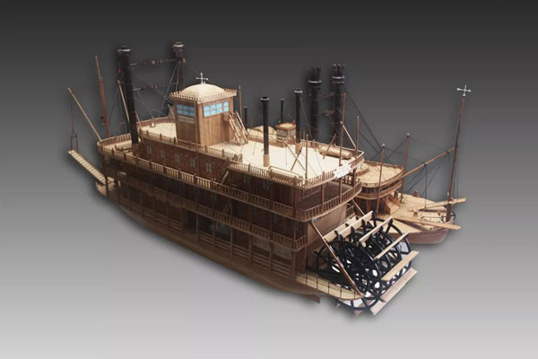 西方早期蒸汽明轮船模型
